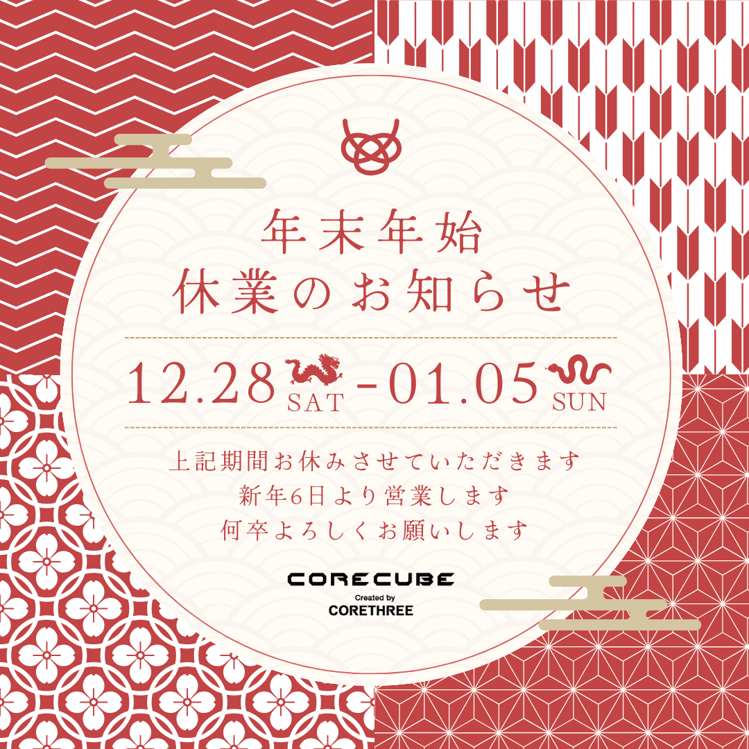 いつもCORECUBEのHPをご覧頂き、誠にありがとうございます。 下記日程にて年末年始休暇を頂きます🎍 【12…【続きを読む】