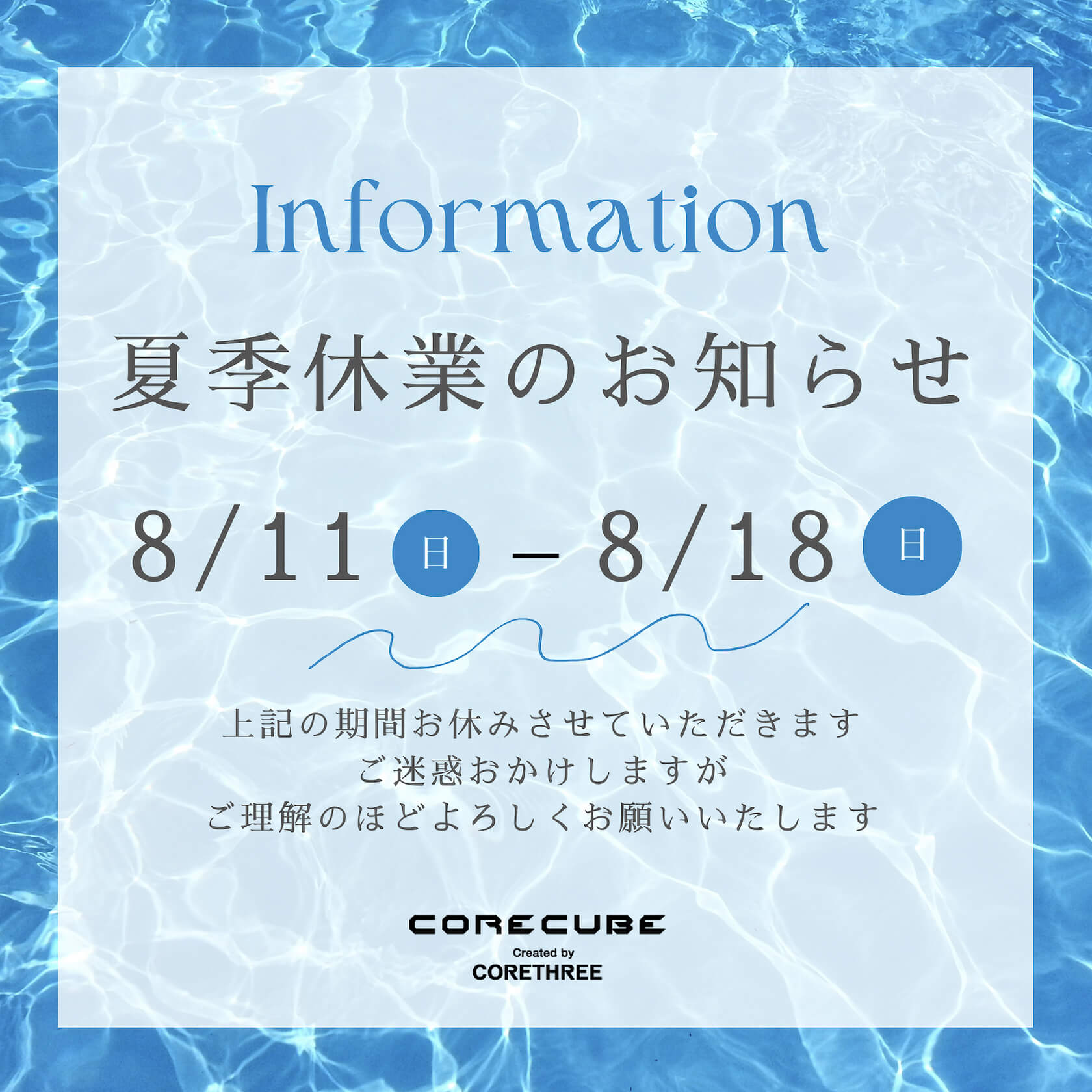 8/11(日)~18(日)まで、夏季休業期間とさせて頂きます。
